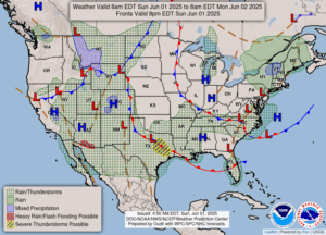 Monday: Mostly sunny. High in the low 80s. Winds SW at 5-10 mph.