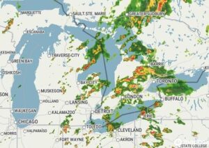 We just had a thunderstorm pass us. We were under a severe TS warning, but were in Owosso. They just got the edge of it, bu here at home, there is three quarters of an inch in my raid gauge, so it seems like most of it passed right over us. As far as being severe, I don’t see any signs of strong winds so it couldn’t have been too bad.