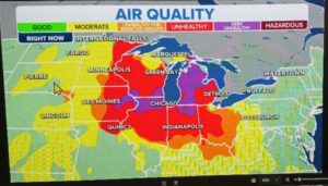 Once again we are advised not to spend much time outdoors due to the wildfire smoke from Canada. I checked out a map yesterday, showing all current wildfires, and it looks like half of Manitoba is on fire. My picture shows the Mackinaw Bridge yesterday through the smoke. As for us, it is still quite hazy and our clear sky looks more grey than blue. We have another round of hot, sticky weather for the week ahead, so this makes me feel that autumn can’t get here fast enough.