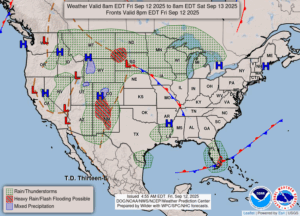 Our 4 PM temperature is 79°F, the humidity is 40%, and winds are from the SSW at 0-3 mph The pressure is 30.34 in and falling. The dew point is 52°F and visibility is 10 miles. Yesterday’s high was 79F and the overnight low was 49°F. Average temps for this date are 76°F/55°F. Record temps for Sept. 11 are 93°F (2013) and 37°F (2051). Sunrise was at 7:13 AM and sunset will be at 7:51 PM.