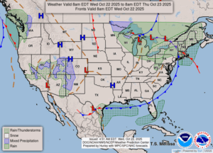 Our 2:15 PM temperature is 51°F, the humidity is 89% and skies are mostly cloudy. Winds are from the west at 5-13 mph and the pressure is 29;45 in and rising. Yesterday’s high was 59°F and the overnight low was 43°F. Average temps for this date are 56°F/41°F and the dew point is 46°F. Visibility is 5 miles. Record temps for Oct.21 are 78°F (2003) and 32°F (2018). Sunrise was at 7:59 AM and sunset will be at 6:43 PM.