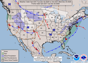 Wednesday: Cloudy skies with snow showers in the afternoon. Highs in the low 30s. Winds WNW at 5-10 mph. Chance of snow 60%. Little accumulation expected.