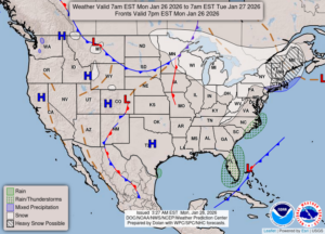 Our 5:30 PM temperature is 13°F, the humidity is 72% and winds are from the west at 4-11 mph. The pressure is 30.07 in and steady. Skies are partly to mostly cloudy and the dew point is 4°F. Visibility is 11 miles. Yesterday’s high was 16°F and the overnight low was 9°F. Sunrise was at 7:57 AM and sunset will be at 5:41 PM.