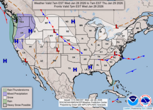 Our 3:45 PM temperature is 16°F, the humidity is 62%, and winds are from the west at 6-12 mph. Our snow cover is 4.5 inches. Skies are overcast and the pressure is 29.96 in and falling. The dew point is 3°F and visibility is 7 miles. Yesterday’s high was 17°F and the overnight low was 12°F. Average temps for this date are 27°F/14°F. Sunrise was at 7:56 AM and sunset will be at 5:44 PM.