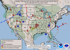 Our 2:15 PM temperature is 68°F, the humidity is 79% and wind are from the SE at 0-5 mph. The pressure is 30.06 in and steady. The dew point is 62°F and visibility is 10 miles. Yesterday’s high was 81°F and the overnight low was 57°F. Average temp for this date are 71°F/49°F. Record temps for Sept 20 are 85°F (2007) and 33°F (2014). Sunrise was at 7:22 AM and sunset will be at 7:36 PM.