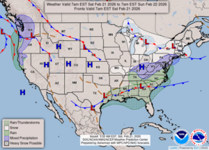 Our 3:45 PM temp is 33°F, the humidity is 73% and skies are overcast. Winds are from the west at 2-4 mph and the pressure is 29.92 in and rising. The dew point is 24°F and visibility is 10 miles. Yesterday’s high was 43°F and the overnight low was 32°F. Average temps for this date are 35°F/18°F. Record temps for Feb.20 are 61°F (2016) and -22°F (2015). Sunrise was at 7:26 AM and sunset will be at 6:15 PM.