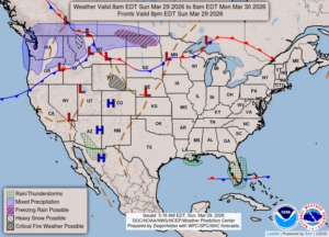 Monday:  Partly sunny.  Winds SW at 10-15 mph, gusting to 20 mph at times.  Highs in the upper 60s.